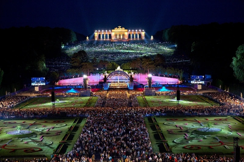 Od roku 2004 pořádá pravidelně orchestr Vídeňské filharmonie letní koncerty v zahradách Paláce Schönbrunn ve Vídni. Tentokrát venkovní prostor rozezvučil dirigent Semjon Byčkov a sólistky na klavír, sestry Katia & Marielle Labequovy.