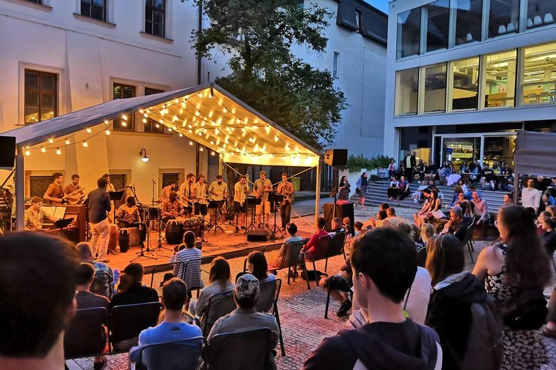 „Živé kultuře se začíná blýskat na lepší časy a mě těší, že se nám podařilo i v tomto vypjatém období tradici Jazzového nádvoří zachovat. Pro studenty je to výborná příležitost, jak nasbírat cenné zkušenosti před početným publikem,“ říká vedoucí Katedry jazzové interpretace JAMU Vilém Spilka, který je také ředitelem festivalu JazzFestBrno. Právě v moravské metropoli studenti vystoupí například pod vedením pianisty Jiřího Levíčka či známého jazzového experimentátora, saxofonisty Michala Wróblewského. Na nádvoří HAMU v Praze bude letošní koncert výjimečně ryze studentský. „Letos jsme akci pojali jako náhradní příležitost za zrušené absolventské koncerty a ročníkové přehrávky,“ vysvětluje jeden z pedagogů HAMU Jiří Slavík. Podrobný program je k nalezení na facebookových událostech Jazzové nádvoří HAMU a Jazzové nádvoří 2020. Koncerty podporuje festival JazzFestBrno a vstup je zdarma.