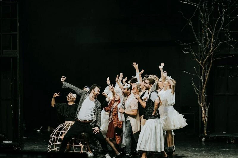 V posledním jednání Falstaffa odehrávajícím se v čarovném lese na scéně dokonce figuruje dětský sbor skřítků a víl. Inscenační tým tvoří celá stovka lidí a kromě studentů Janáčkovy akademie múzických umění v Brně se v inscenaci objeví také externí herci a právě dětský sbor Kantiléna. Oba tituly inscenuje režisérka Natálie Gregorová jako divadlo v divadle. „Herci přicházejí na scénu tedy do divadla a pomalu se postupně do svých rolí dostávají,“ doplnil představitel Falstaffa Tadeáš Hoza. Cílem nastíněné režijní koncepce je poukaz na některé vnějškové rysy fungování divadelního života, včetně vztahů či intrik. Jak doplňuje dirigent Habart, jde vlastně o operu založenou na recitativech, v nichž různorodost nástrojových barev dotváří dějovou linii. Habart povede třicetičlenný Janáčkův akademický orchestr.