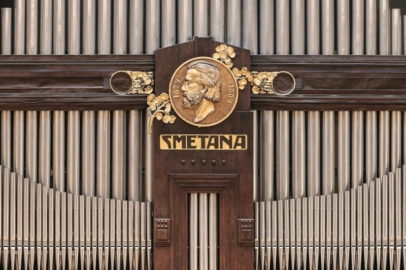 Obrovské varhany z roku 1912, zdobené zlaceným bronzovým reliéfem Bedřicha Smetany od Františka Hergesela, už před vznikem republiky budily pozornost pro svoji technologii a zvuk. Mají celkem 4814 píšťal a dva hrací stoly, které díky pojízdným podstavcům mohou stát kdekoliv na pódiu. „Ve své době to byl jeden z nejmodernějších nástrojů na světě a dodnes si zaslouží zvláštní pozornost pro specifický způsob hry na ně,“ řekl Jaroslav Tůma. Jaroslav Tůma a Daniela Valtová Kosinová jsou ve Smetanově síni téměř doma. Jaroslav Tůma je na místní varhany specialista, jeho žačka Daniela Valtová Kosinová je členkou Symfonického orchestru hl. m. Prahy FOK, tedy k těmto varhanám zasedá při každé příležitosti, kdy Pražští symfonikové hrají repertoár, v němž je královského nástroje zapotřebí.