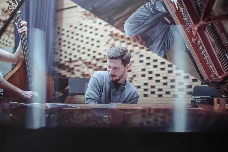 Kudy vedla cesta k vlastnímu albu? Čím vás inspiruje při netradičních inspiracích tak „tradiční“ pianové trio? Vždycky jsem v sobě tak nějak nosil sen hrát svou hudbu v jazzovém triu. Možná je to dáno jarrettovskou inspirací, nebo jenom intimitou a ohebností akustické triové sestavy – nevím. Ale po návratu z Rakouska jsem v Brně dokončil bakalářské studium a rozhodl se, že chci takové trio dát konečně dohromady v podobě, která bude mít potenciál pro růst a dlouhodobější práci. Minulý rok na podzim vlastně jako na zavolanou přišla možnost zahrát závěrečný koncert festivalu Bachův podzim a právě díky této nabídce jsem připravil sérii skladeb inspirovaných hudbou J. S. Bacha. Spojil jsem síly s lidmi, ve kterých jsem cítil komplementární hudební chápání, s Peterem Kormanem na kontrabas a Markem Urbánkem na bicí, a vytvořil trio, které podezřele dobře zafungovalo. Protože jsem měl pocit, že by byla škoda hudbu nezakonzervovat, dokud funguje ve své čerstvé podobě, dopsal jsem ještě pár skladeb a v březnu jsme nahráli desku.