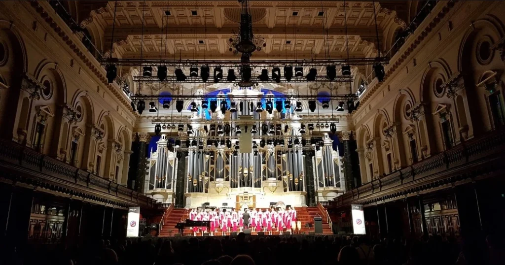 Symbolický 5. červenec – den kdy oslavujeme příchod věrozvěstů, byl pro nás nejdůležitějším dnem celého turné. V podvečer nás čekalo hodnocené vystoupení v Sydney Town Hall. V rámci soutěžního programu jsme do Austrálie vnesli nejpůsobivější skladbu našeho současného repertoáru Te Deum Laudamus Jana Jiráska. To jsme předvedli společně s Ascendit Deus Jacoba Galla, Hoj, hura hoj Otmara Máchy a Gorale v úpravě Jana Vičara.
