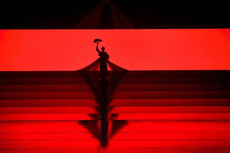 Minghella ovšem natočil daleko více filmů a některé z nich známe i u nás – například Talentovaného pana Ripleyho nebo Návrat do Cold Mountain. Do Pucciniho Butterfly se vžil až neuvěřitelně. Možná, že si ji přizpůsobil vlastnímu filmařskému vidění, když se scénografem Michaelem Levinem vybudovali širokou a nepříliš hlubokou, temnou scénografii, na níž se neslyšně a jako by bez pomoci pohybovalo asi deset plošných bělavých paravánů. Jejich účelem bylo průběžně proměňovat půdorys inscenace. Minghellovou stálou spolupracovnicí je také jeho manželka, choreografka Carolyn Choa (narozená v Hong Kongu), jež se podílela i na Madame Butterly. V kostýmech čteme rukopis newyorského návrháře Hana Fenga.