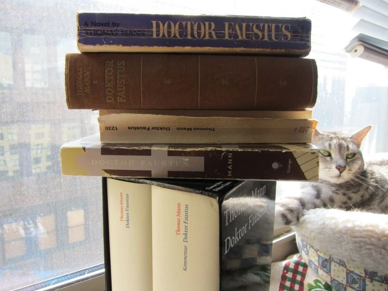 Převodem hudby do slov se zabývá i Thomas Mann v románu Doktor Faustus . Popisuje zde život a dílo fiktivního geniálního skladatele Adriana Leverkühna. Jeho osobnost a jisté životní momenty mají předlohu v konkrétních osobnostech (Arnold Schönberg a Friedrich Nietzsche). Mnoho různých pohledů na hudbu formuloval Mann spolu se Schönbergem. Thomas Mann využil snad všechny myslitelné prameny – na napsání knihy se připravoval celý život a začal na ní pracovat teprve ve stáří. Využívá všechny vůbec ještě myslitelné prameny, aby svému textu dodal co největší hloubku, přesnost líčení a rozmanitost pohledů z různých perspektiv. Studoval díla z téměř všech období filosofie – od Aristotela, scholastiků, Platóna až k Einsteinovi. Zabýval se tedy i texty vědeckými a specializovanými. Probíral se encyklopediemi, odbornými slovníky, přírodovědnými příručkami, životopisy. Obracel se o radu na věhlasné lékaře, aby rozuměl nemocem. Osobně se stýkal s hudebníky, včetně těch slavných. Konzultoval a studoval psychologii i psychiatrii. Jedna velká část románu se pro změnu zabývá velice odborně teologií. Podle mého názoru je tato kniha neuvěřitelným pokusem vyjádřit hudbu slovy. Mimochodem jsou tam nádherné příklady, kdy skladatel přemýšlí, jak nějakou složitou skladbu slovně specifikovat jako ideu a definovatelnou konstrukci a pak ji teprve přepsat do not. Také se v tomto skladatelově přemýšlení dozvíme, že například Beethoven si často nápady nezapisoval do notového zápisníku, ale psal si koncept slovy. Tato kniha skutečně dokáže nahlédnout do hlavy hudebního skladatele. Mann o hudbě nepíše jen z hlediska historie a nepopisuje jen city, pocity, účinky, efekty, ale přidává ještě uvažování o hudbě takovým způsobem, který se snaží o pochopení slyšeného i jeho účinku. Cítění hudby se pak ovšem může mírně nebo i výrazně změnit, ale především se může prohloubit zážitek. Pokusím se uvést trochu neobratný příměr. Řekněme, že právě jíme a oceňujeme výborný domácí chleba. Přijde jeho výrobce a řekne nám, jak si mele konkrétní mouku sám a proč tuto a odkud je úroda a proč na tuto konkrétní hrubost a jak a jakým způsobem hrubost ovlivňuje jiné parametry atd., a skončí až u jeho pečení. Také nám řekne něco z historie tohoto pokrmu. Informace podaná příběhem tak trochu rozšíří a prohloubí zážitek z právě konzumovaného chleba. Aby tedy Mann mohl mluvit jako, řekněme, výrobce, hudební výrobce, musel hlavní postavou udělat hudebního skladatele. Potřeboval mít možnost se vyjadřovat jako on. A aby výklad byl ještě hlubší, dal i samotnému skladateli příběh v podobě životopisu od jeho narození až do smrti. Vysvětluje to tak, že aby skladatelovo uvažování mělo co nejpreciznější význam, musí dát i tomuto myšlení kompaktnosti v podobě záznamu jeho vývoje a vývojových souvislostí. Text jde neskutečně do hloubky a člověk má pocit, že jednoznačně a přímočaře, a přitom je text naopak neskutečně košatý a rozvětvený, básnický a chodí jakoby okolo. Je také ale zároveň psychologický, filosofický, hudební a vědecký s kvantem odborných termínů. Tedy i z jeho jazyka je zřejmé, že cíl lze popsat jen tak, že popisuji cestu k němu. Je nutné dodat, že tento velmi složitý text skvěle přeložil Hanuš Karlach. Knihu vydala Mladá fronta roku 1986.