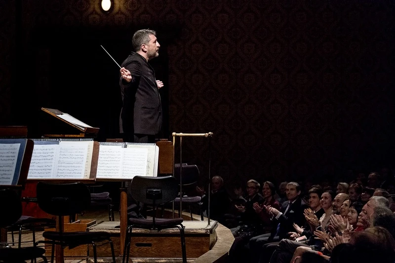 Úsměvný papá Haydn otevřel večer velmi slibně, i když tentokrát nebyl zas tak úsměvný, spíše překvapivý a lehce zneklidňující. Symfonie fis moll č. 45 „Abschied“ („Na odchodnou“) je vlastně vtipným diplomatickým vzkazem Haydnovu chlebodárci a zaměstnavateli, knížeti Esterházymu, že už byl nejvyšší čas k návratu z letního sídla do Eisenstadtu, kde všichni muzikanti měli své rodiny. Její dnešní, docela četné, uvádění je však zcela ospravedlněno především jejími mimořádnými hudebními kvalitami. Česká filharmonie hrála pod robustním gestem Thomase Adèse v komorní sestavě (2 cb, 3 vc, 4 vle atd.), která se v proslulém Finale, jež dalo Symfonii jméno, ještě postupně rozpadá, jak muzikanti postupně odcházejí, zhášejíce své svíce. A hrála znamenitě, předvádějíc více než svůj standard. Zaujala hned allegrová věta svou turbulencí, typickou pro Haydnovo období Sturm und Drang, v níž se blýskly jemně vypracované party smyčců. Pozoruhodné Andante, váhavě tonálně bloudící a otálející s návratem do hlavní tóniny A dur, velmi bizarní Menuet ve stejnojmenné tónině Fis dur, a samozřejmě vtipné Finale, melodicky i harmonicky svěží – to vše Thomas Adès u pultu filharmoniků zcela adekvátně podtrhl.