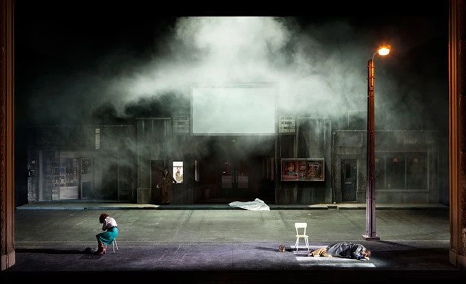 Vlámská opera s touto inscenací na sebe vzala vysoké riziko. Režii a výpravu svěřila 38letému belgickému divadelníkovi, který nikdy předtím nerežíroval operu! Stef Lernous má sice vlastní divadelní soubor (Abattoir Fermé, jehož členové tvořili kompars), jenže Wagnerova opera je něco úplně jiného než moderní divadlo. Lernous sice Wagnerův symbolismus celkem zachoval, ale dělá s ním úplně něco jiného, než by fanoušci Wagnera předpokládali. Před několika lety v Bruselu vyvolala u tradičního obecenstva skandál pro mne zdařilá Rusalka v nevěstinci, tato Lernousova produkce Tristana a Isoldy jde ještě dále. Na začátku opery nenalezneme Isoldin stan, ale jakési prostranství před kinem s neblahou pověstí, kde leží Tristanovým mečem uťatá hlava Morolda. Tristan a Kurwenal, manažeři kina, vypadají spíše na české kmotry, nechybí zde ani putyka nejnižší cenové skupiny a noční obchod. Od začátku je zřetelné, že mezi Tristanem a Isoldou vzniká milostný poměr, nápoj lásky je zde zbytečný. Jelikož jsem velkou část svého života prožil v Praze v době „zářných zítřků socialismu“, cítil jsem se v 2. dějství Lernouse jako doma: žádný hrad krále Marka, ale špinavé veřejné záchodky, rozbité zrcadlo, většinou nesvítící lampy a z kohoutků netekoucí voda. Ženská a pánská část je oddělena silnou zdí, přes kterou si milenci vyznávají lásku, tedy scéna jen pro otrlé diváky. Ani v posledním dějství nenajdeme hrad Kareol, ale dost nelogicky luxusní restauraci, kde si hosté mobily fotografují ležícího Tristana v náručí Isoldy. Bayreuthští návštěvníci smělých návrhů Wielanda Wagnera z let šedesátých by se nestačili divit. Skutečně provokující inscenace, ale proč ne?