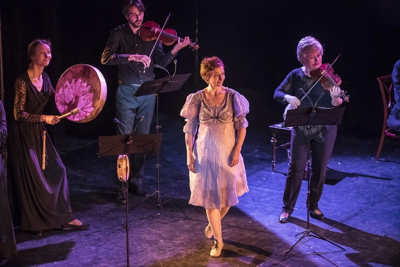Orchestr v jednotně černém oblečení se v průběhu večera přeskupoval jako stíny v odlesku slavnostního ohňostroje a přesouval se po jevišti – vyjma skupiny basso continuo – tak, aby s tanečnicí tvořil vzájemně se ovlivňující symbiotický útvar. Činil tak s elegancí postrádající křiklavou teatrálnost, která by tomuto souboru neslušela a do které se naštěstí nenutí. Jindy pohybově výrazná Jana Semerádová nedala tentokrát plný průchod svému temperamentu, aby zachovala navozenou atmosféru a aby mohla více vyniknout sólistka, která si záhy podmanila celé hlediště. Není divu, protože výrazový, pohybový a choreografický rejstřík Gudrun Skamletz je skutečně pozoruhodný. Dokáže s ladnou důstojností dostát všem pravidlům barokního tance, což ukázala zvláště v působivě ztvárněné rekonstrukci passacaille z opery Armide Jeana-Baptisty Lullyho, za pár vteřin se z královny proměnit v klauna, ptáka, španělskou vědmu, poškádlit hudebníky, komunikovat s publikem a neztratit snad ani na vteřinu svou taneční graciéznost. Zároveň se nebojí opustit zcela historicky poučenou interpretaci a nabídnout publiku prvky moderních tanečních technik, jež do hudebního kontextu zapadají s okouzlující samozřejmostí. Své vystoupení zakončila snovou taneční etudou na Flétnový koncert g moll Antonia Vivaldiho La notte, jejíž první věta nese podtitul „Fantasmi“ a věta závěrečná „Il sonno“. Pochvalu si zaslouží i jednoduché, nápadité kostýmy Chantal Rousseau.
