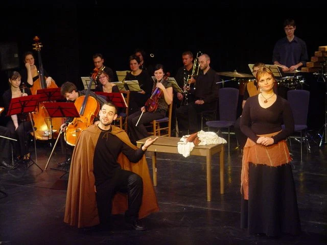 Bravurně vypointovanou, inteligentní a skvěle zvládnutou se pro mě ovšem stala repríza první celovečerní opery Ondřeje Kyase na libreto Pavla Drábka Pickelhering 1607 aneb Nový Orfeus z Bohemie . Pro Ensemble Opera Diversa vznikla jako pocta Monteverdiho Orfeovi při příležitosti čtyřstého výročí jeho uvedení roku 1607. Dvorský příběh z Jindřichova Hradce, kdy na počest výročí sňatku panovníka přichází kočovná divadelní skupina z Anglie (která ovlivní život jednotlivých postav), je prodchnut kurtoazií, silnými motivy z mytologie, ale především hudebním a textovým vtipem (Janáček, Wagner). Můj obdiv sklidilo po všech stránkách čitelné a svěže parodované rozložení sociálních vrstev, jednoduché funkční kostýmy a líčení, stejně jako herecké a pěvecké výkony mladých umělců. Lucie Kašpárková , dříve představitelka Dóry (Lucie Hilscherová ), se nyní zhostila role melancholické Lucie, Jiří Miroslav Procházka opět vynikal jako Jahoda spolu s mladým Jakubem Tučkem (Kašpar) a Davidem Vonšíkem (Reynolds). Pro tuto příležitost bylo zvoleno večerní provedení pod širým nebem na nádvoří Staré radnice, které potlačovalo slušnou akustiku, na kvalitách orchestru se ovšem tato skutečnost neodrazila. Nejen Brno by uvítalo více tak skvělých oper!