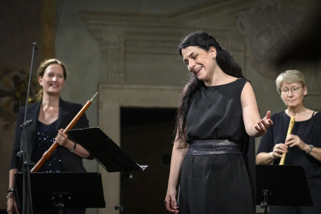 Až příliš zaplněný kostel (podezřívám organizátory, že pro velký zájem zhustili řady i židle mezi sebou) sledoval etablovaný ansámbl Capella de la Torre, jehož vedoucí – hobojistka a šalmajistka Katarina Bäuml – je nepřehlédnutelnou postavou staré hudby. Ale troufnu si tvrdit, že většina z posluchačů přišla především na sopranistku Hanu Blažíkovou, která se během své kariéry stala jednou z nejvýraznějších zpěvaček barokní a starší hudby. A přestože si vydobyla významné renomé po celém světě (zpívá namátkou s Phillipem Herreweghem, Jordi Savallem či souborem L’Arpeggiata), zůstává také dostatečně „naše“. Zpívá v souboru Tiburtina ensemble, spolupracuje pravidelně s Collegiem Marianem, Capellou Marianou, Collegiem 1704, Musicou Floreou a dalšími. V rámci souboru Tiburtina Ensemble už se potkala i s Capellou de la Torre při společném projektu s hudbou Tomáse Luise de Victoria.
