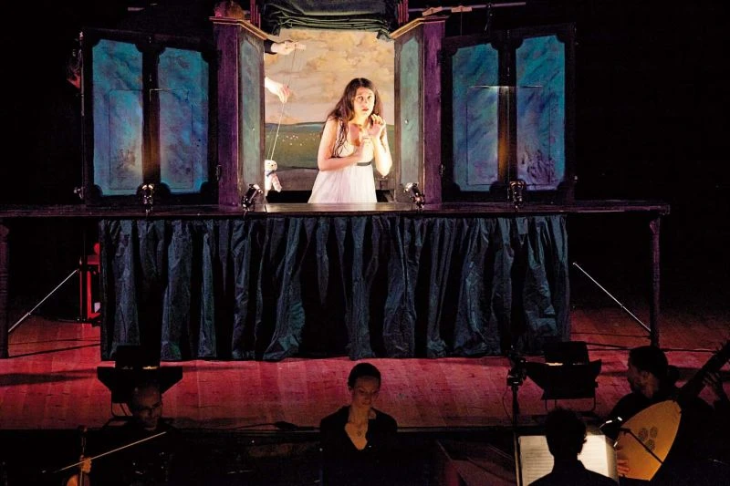 Inscenaci vytvořil režisér Vít Brukner s divadlem Buchty a loutky . Loutky vycházely z barokních vzorů, ale důležitější bylo, že byly barokně i vedeny. Ke komornímu zvuku tehdejší hudby se zmenšená loutková scéna perfektně hodí. Ucho zvyklé na velké symfonické orchestry a oko uzpůsobené rozměrným scénám se najednou může zaměřit do užšího akustického i vizuálního prostoru. Zvukový i zrakový vjem spolu souzněly v podstatě ideálně.