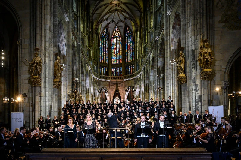 Svoji reflexi hudebního čtvrtka 16. září musím začít letmou předjímkou. Den předtím, ve středu 15., se na festivalu Dvořákova Praha představil pianista Kit Armstrong – subtilní postavou, gigantický uměním. Jak povýšil „Egyptský“ koncert Camilla Saint-Saënse z kompoziční všednosti na velkolepé dílo jsem zažil v hudbě jen několikrát v životě. Navíc Pražští symfonikové vedeni Tomášem Braunerem sugestivně provedli Svěcení jara. Myslím, že by měl Igor Stravinskij radost, jak jeho ještě dnes provokující pohanská hudba zněla syrově, drsně a posluchače mohlo jen mrzet, že chyběl taneční kondukt. Jaký kontrast k idylickému ztvárnění pohanství další večer v katedrále sv Víta.