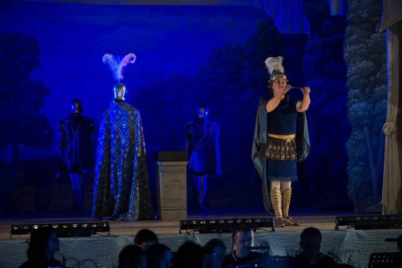 V letošní pražské inscenaci opera zazněla poněkud zkrácena – zejména recitativy v třetím dějství byly výrazně seškrtány. (Porozumění textu usnadňovalo promítání titulků vedle jeviště). Celkový dojem silně určovala výprava a režie v barokním duchu. Florea Theatrum sice ještě nemá všechny základní dekorační sady (v inscenaci chyběl především vojenský tábor), i tak ale použité pestré iluzivní malby a scénické proměny zapůsobily.Režie se ujal zkušený francouzský herec a režisér Laurent Charoy: hra „en-face“, pohyb po diagonálách a na střed, převážně taneční krok, barokní gestika, kontrastní mimika, tak lze ve zkratce shrnout zásady hereckého projevu. Barokní estetika byla umocněna tanci (choreografie Helena Kazárová, tančil Ensemble Hartig) a zároveň vhodně několika málo „zcizovacími“ efekty, například deklamací.