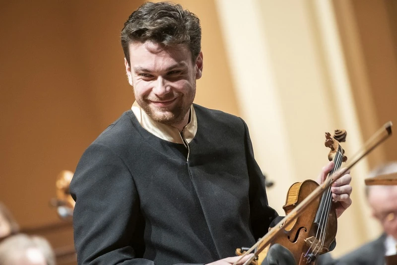 Úvodem zaznělo třívěté Stravinského Concerto Es dur „Dumbarton Oaks“ (1937), skladatelova poklona Bachovým Braniborským koncertům a mecenáši Robertu Woodsovi Blissovi, který si skladbu objednal k 30. výročí svatby. Polyfonní kompozice nedá posluchači vydechnout ani ve střední větě s předznamenáním Allegretto a svou nápaditostí hraničí až s hudební travestií. Filharmonikové by se v tomto vtipném a svěžím dílku bez dirigenta nejspíše obešli. Rozhodně dokázali, že Stravinský je na pódiu Rudolfina vítaným, i když (bohužel) ne příliš častým hostem. Stravinského následoval jiný ruský světoběžník, Sergej Prokofjev a jeho nádherný Koncert pro housle a orchestr č. 2 g moll op. 63 (1935), dýchající naivitou a melodickými půvaby Péti a vlka. Před orchestr se postavil jeden z jeho koncertních mistrů, totiž Jiří Vodička, a v Rudolfinu naslouchala rázem dvě auditoria, jedno v sále, a to druhé z řad kolegů filharmoniků na pódiu. Skromně vystupující Jiří Vodička se díla ujal s bravurou a technickou sebejistotou. Jaké šťastné dny prožívá Česká filharmonie, když se u jejího prvního pultu střídají mladí houslisté Josef Špaček, Jiří Vodička a Jan Mráček, posledně jmenovaný onoho recenzovaného večera (14. 3.) v úloze koncertního mistra. Vodička se ukázal být důvěrným znalcem Prokofjevovy kompoziční krajiny, v níž tu vykoukne líbezná melodie, tu sarkastický úšklebek. Hráčskou bravuru – jakoby jen tak mimochodem – zcela vložil do služeb díla a technické schopnosti připomněl až v přídavku, Paganiniho houslovém Capricciu č. 24 a moll. Publikum je vyslechlo s němým úžasem, jakým reaguje dětské publikum na kouzelníkovo vystoupení. Jednatřicetiletý rodák z Havířova zvolil onoho březnového večera outfit čarodějova učně, hrál ovšem jako kouzelník.