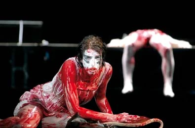 Bezvládné mužské tělo s vyhřezlými krvácejícími vnitřnostmi. A hned vedle skoro stejně pokroucená žena. Dala zabít, přestože milovala. Tak končí drážďanská Penthesilea . Bizarní, nesmírně sugestivní příběh podle stejnojmenné Kleistovy tragédie, ze kterého jde až mráz po zádech. Drama z řecké mytologie, zdaleka ne nepodobné Straussově Salome. Však také Othmar Schoeck (1886 – 1957) inspiraci Straussem, ale i Wagnerem a Ravelem přiznával. I tak ale rozhodně dokázal být svůj – jak třeba potvrzují hned dva klavíry v orchestřišti (i když v Drážďanech od února hrají pozdější přece jen trochu „učesanější“ verzi, ve které na rozdíl od té původní už nechybějí smyčce). Drásající křik i komorně ztišený recitativ, burájející atonalita i docela líbivá melodie, ohromující sborové scény i magicky přitažlivé přiblížení všech zákoutí psychiky jednotlivce – takový je Schoeckův expresivní jazyk (chvílemi připomínající třeba Schönbergovo drama Erwartung). Právě v saské metropoli měla Penthesilia před jednaosmdesáti lety svou premiéru (další verze uvedli vzápětí v Curychu a o něco později pak v Lipsku). Těžko říct, proč se natrvalo nikdy na operních jevištích neuchytila. Rafinovaně dramaticky vyklenuté dílo přitom budí zdání, že s dneškem musí souznít snad ještě líp, než s dobou svého vzniku. V Semperově opeře je to ale bezesporu i zásluhou režiséra Güntera Krämera . (Jak jen rozmanitý je jeho výrazový slovník, srovnáme-li aspoň z poslední doby třeba jeho vídeňskou Židovku, salcburského Mitridata nebo drážďanskou Lásku Danainu!) Krämer si vystačí jen s obrovskou různě se naklápějící a otáčející pozlacenou stěnou a s více či méně roztaženou oponou. Prakticky veškerou pozornost tak soustřeďuje na vnitřní svět hlavní hrdinky, pro niž v Drážďanech našel vskutku ideální představitelku. Iris Vermillion (v současnosti ceněná hlavně jako Straussova Herodias) prostě budí zdání, jako by Schoeck psal Penthesileu přímo pro ni. Její mezzosoprán sice není ve všech polohách úplně ideálně vyrovnaný, ale je obdivuhodně tvárný a ve výrazu schopný nečekaných proměn. Respekt budí Vermillion také svým absolutně stoprocentním nasazením a vnitřním prožitkem, jaký se v opeře hned tak nevidí (však se také po posledních taktech – po pouhé hodině a čtvrt – sotva držela na nohou). Pochopitelně tak trochu ve stínu zůstal spolehlivý Markus Nieminen jako mužný Achilles. Zmínit je ale rozhodně třeba ještě Gerda Albrechta – měl jsem z něj pocit, jako kdyby právě tuhle nelehkou partituru měl v ruce snad obden a jen si vychutnával ty nejjemnější finessy. Zkrátka a dobře: Tak trochu šok – dostat se z našich poměrů na tuhle produkci.