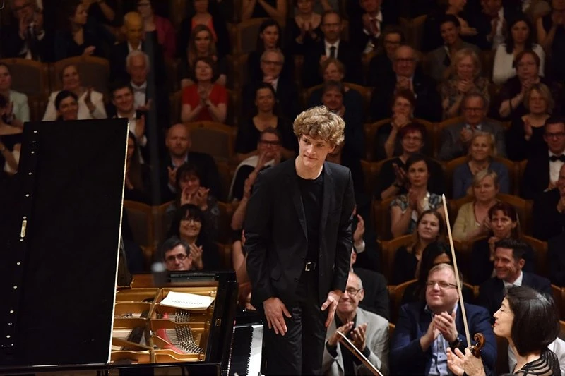 Dalším číslem programu byl Klavírní koncert č. 1 g moll op. 25 Felixe Mendelssohna Bartholdyho. Jedná se o rané dílo, o němž se sám autor později vyjádřil značně nelichotivě – prý ho napsal „dost ledabyle“. Popravdě řečeno se nelze Mendelssohnovu odsudku moc divit, skladba skutečně není nijak zvlášť hlubokomyslná. Je ovšem pianisticky velmi vděčná a poskytuje interpretovi – především v krajních větách – velký prostor, aby se blýskl svou technikou. Sólového partu se ujal mladičký, teprve čtyřiadvacetiletý Kanaďan Jan Lisiecki, jenž se přes své mládí řadí k nejvýznamnějším soudobým klavíristům. Jeho umění jsme měli možnost ocenit na Pražském jaru už před dvěma lety, kdy okouzlil festivalové publikum v Schumannově Klavírním koncertu a moll op. 54. A neméně nadchl i letos svým Mendelssohnem. Krajní věty hrál v úžasném tempu, se strhující brilancí a navíc se zjevným potěšením. Pevný rytmus stvrzoval suverénně sázenými basy a všechny rychlé pasáže (jichž je v díle bezpočet) mu pod prsty doslova jiskřily. V sólovém recitativu, který uzavírá první větu a zároveň uvádí větu následující, však umělec jako by zjihl a jeho tón přímo zázračně zjemněl, takže jsem celou druhou větu vnímal, jako by se do sálu snášela hudba z nebe. Mimořádně pozoruhodné je pak na tomto pianistovi, že u klavíru neustále působí naprosto přirozeně. Vše, co hraje, zní neobyčejně upřímně, Lisieckému věříme každý tón, každou frázi, a hlavně: jeho viditelné potěšení ze hry se přenáší i na posluchače. Orchestr vybrousil doprovodnou složku Mendelssohnova koncertu do nejmenšího detailu – v dynamice, agogice i v barvách. Jako by se ani nejednalo o doprovod k sólovému výkonu, ale o komorní hudbu. Lisiecki sklidil za svého Mendelssohna zcela oprávěně standing ovation. A jeho přídavek byl také mendelssohnovský – přednesl skladatelovu Píseň beze slov a moll op. 62/5, s neskutečně měkkými basy a s kantilénou stejně nadzemskou, jakou jsme slyšeli v pomalé větě klavírního koncertu.