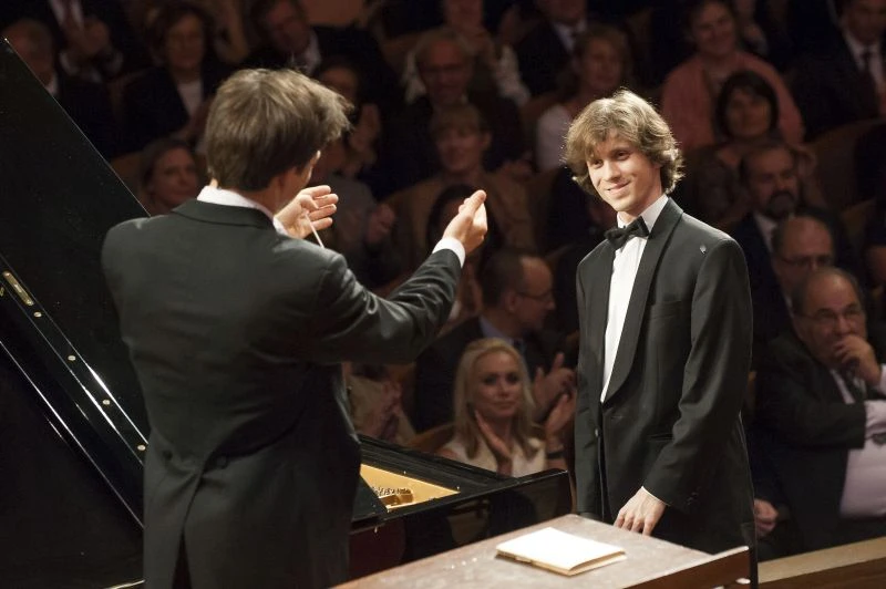Druhým číslem programu byl oblíbený Schumannův Klavírní koncert a moll, op. 54 . Jako sólista v něm vystoupil osmadvacetiletý polský pianista Rafał Blechacz , vítěz varšavské Chopinovy soutěže v roku 2005 a jeden z nejzajímavějších představitelů mladé klavíristické generace. Přestože mu hned v sólovém úvodu nevyšla nijak zvlášť přesvědčivě akordická pasáž, byl nakonec jeho výkon v celém koncertu více než obdivuhodný. Blechacz má jedinečný zpěvný tón a neméně jedinečný cit pro kantilénu, což jsme mohli ocenit především v poetických partiích. Velký podíl na působivém vyznění díla měl také Cornelius Meister, který dokázal objevit v Schumannově partituře netušenou barevnost (skvělé klarinety a hoboje). Přestože je Blechacz bezpochyby především introvertní lyrik, největší dojem z celého Schumannova koncertu ve mně nakonec zanechala finální věta. Jak orchestr, tak sólista ji hráli s obrovským rytmickým švihem, přičemž ve vrcholech gradací dokázal Cornelius Meister rozzářit svůj ansámbl jako slunečný den někde ve Středozemí. Po závěrečných akordech Schumannova koncertu si aplaudující obecenstvo vyžádalo na Rafału Blechaczovi přídavek. Pianista si pochopitelně zvolil Chopina. Skladatelův Valčík a moll, op. 34/2 přednesl s úžasnou fantazií, poetičností a s tak jemnými úhozovými nuancemi, že se o Blechaczově přední pozici mezi soudobými chopinovskými interprety nedá pochybovat ani v nejmenším.