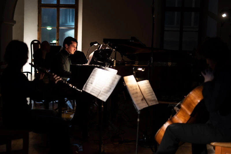 Večer zahájilo Hobojové trio Františka Emmerta – skladba, která se dle slov interpretů stala důležitým impulsem pro soubor, jenž se rozšířil právě o hobojistku Barboru Šteflovou. Emmertova skladba v sobě pojí vášnivý hudební dialog i křehké a poklidné souznění mezi hobojem a violoncellem – nástroje se střídají, doplňují, dohadují a přichází ke smíru. Častým hudebním prvkem, který Emmert ve svém Hobojovém triu využívá, je unisono hoboje a violoncella, ze kterého se oba nástroje rozcházejí různými směry, častokrát však zůstávají v těsném sepjetí, které skladateli umožňuje pracovat v jediném okamžiku s barvou, melodií i rytmem. Nejnáročnější úkol však leží na bedrech interpretů, kteří musí autorův záměr v díle najít a umocnit. Troufám si říct, že v případě souboru Opera Trio si nebylo opravdu nač stěžovat. Právě v okamžicích nejtěsnějšího souznění nástrojů se projevilo, jak moc se hudebníci snažili dílo pochopit a tlumočit Emmertovy hudební myšlenky.