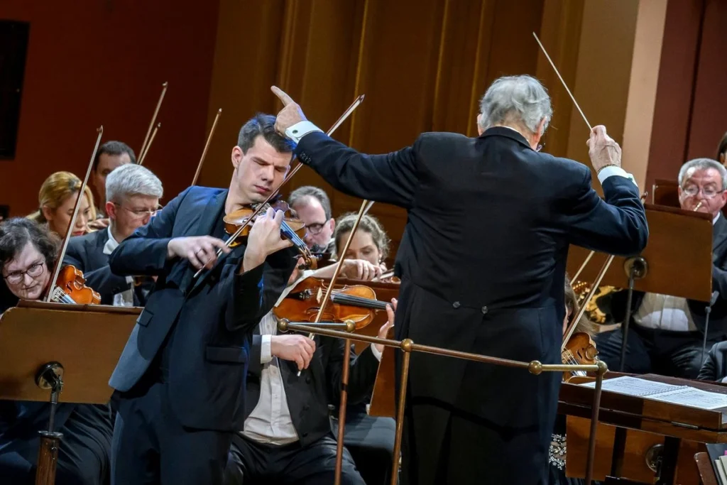 Druhou kompozici večera jsem v Gardinerově nastudování očekával s velkým napětím. Sukova tvorba, jmenovitě Fantasie pro housle a orchestr g moll op. 24, totiž rozhodně není dirigentovým denním chlebem. Spíše naopak. Když před více než třiceti lety Gardiner nastoupil do čela Symfonického orchestru Severoněmeckého rozhlasu v Hamburku, uváděl s ním i díla Mahlerova, Zemlinského nebo Schoenbergova přibližně z doby kompozice Sukovy Fantasie. Sukův jazyk je však přece jen specifičtější než dnes již univerzální symfonická Mahlerova mluva. Na rozdíl od svého staršího krajana Mackerrase Gardiner Sukovu partituru jen přečetl, aniž by dokázal v dynamice nebo ve zvuku interpretovat všechny ty jemné valéry a finesy Sukovy zvukově dekadentní partitury, od níž dirigent v podstatě po celé dílo nezvedl oči. O to více vynikl absolutně strhující výkon Jana Mráčka, který od prvních taktů připoutal pozornost publika k sobě a svému nástroji. Před deseti lety jsem v tehdy nově otevřeném koncertním sále ve slezských Katovicích slyšel tuto kompozici s filharmoniky, jejich tehdejším koncertním mistrem Josefem Špačkem a Jiřím Bělohlávkem. Bylo to strhující nastudování. Suverénní způsob, jímž se ovšem díla doslova zmocnil Jan Mráček, dlouho, ne-li navždy zůstane v paměti přítomného publika. Zvláště hra v nejnižší dynamice a schopnost zprostředkovat křehkou jímavost Sukovy melodiky jsou Mráčkovou nedostižnou devízou. Filharmonikové šli svému kolegovi naproti, jak jen to bylo pod dirigentovou taktovkou možné, a z jejich (i když poněkud opatrného) provedení si snad vzal poučení i Gardiner. Sólista se s podiem rozloučil prstokladovou exhibicí z Paganiniho dílny (Nel cor più mi sento) a publikum vřelo na sto stupňů.