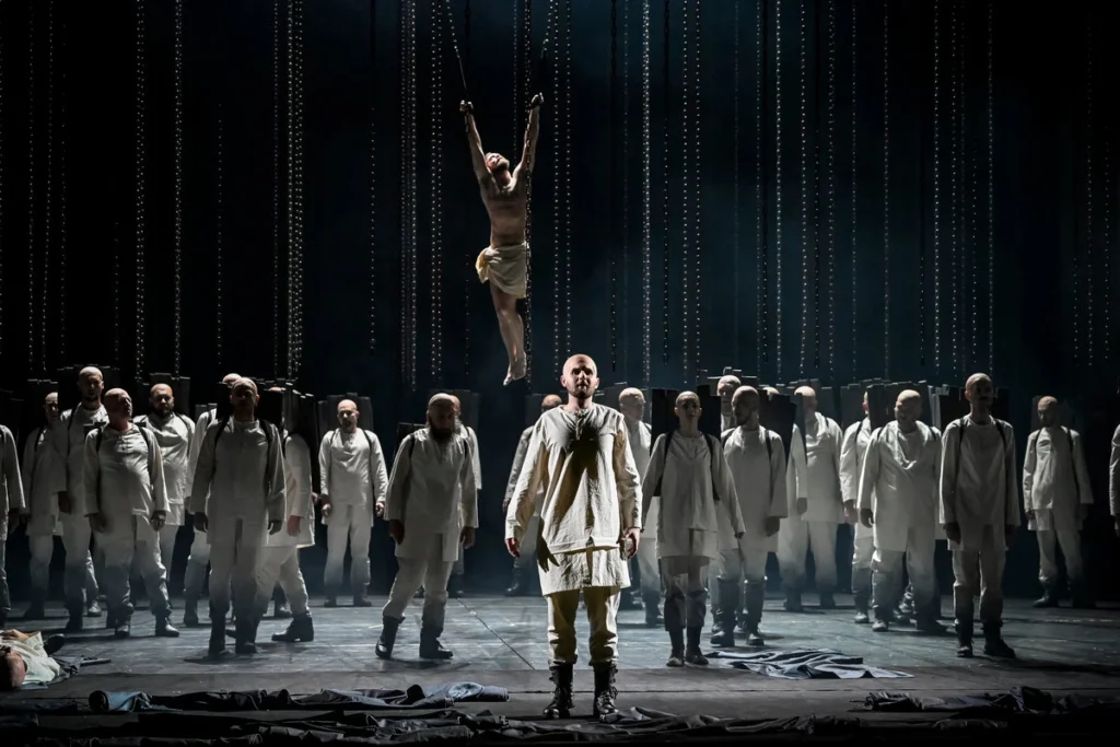 Heřmanovým hlavním tématem je v opeře Z mrtvého domu utrpení mužů v souvislosti s jejich zločiny na ženách. Jeho „Kristus“ (a zároveň „raněný orel“) je zavěšený za ruce na řetězech nad jevištěm, vězni stojící pod ním jako by na řetězech viseli také. Kristus se později svíjí na zemi, je ztělesněné utrpení, vězni jsou, jak jinak, neustále biti a laskaví nejsou ani sami k sobě. Ženy tu jsou buď předmětem chvilkového potěšení (Poběhlice) nebo ztělesněnou představou těch, kteří jim ublížili (Aljejova matka, Lujza a také Akulina – němá postava v podání Kateřiny Kněžíkové). Gorjančikov přichází ve svém občanském oblečení a vzápětí se stane nedílnou součástí davu stejně vyholených a stejně oděných jedinců. Jsou téměř k nerozeznání i díky letmo propracovaným odlišnostem charakterů. Autorem světelného designu je režisér a myslím si, že některé výjevy byly světelně poddimenzované, což se pochopitelně projevilo ještě víc při představení 6. listopadu na streamu pro Operavision.