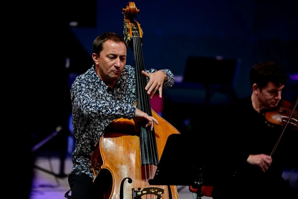 Mimořádně podnětný večer Ostravské bandy pak zakončilo ještě trochu odlišné zamyšlení, než obsahovala předchozí díla – Tales of the Traveller George Lewise z roku 2016 konfrontuje předepsaný part devítičlenného ansámblu s improvizovaným sólovým partem, jehož se zde zhostil František Výrostko na kontrabas. Obtížné party mají předepsané i hráči tělesa, ovšem špičkový výkon sólisty, vedeného toliko slovními pokyny – a umně využívajícího díky amplifikaci svého nástroje také bohatých možností efektů – byl stěží uvěřitelný. Invencí, technikou, hudebností i samotným vizuálním účinkem.