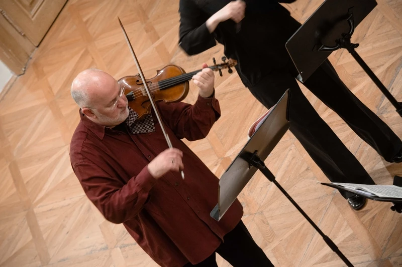Pátým koncertem sezony 2015/2016 pokračoval 18. února cyklus Bacha na Mozarta, který v Brně pořádá Czech Ensemble Baroque. Tentokrát v Besedním domě představil houslistu Johna Hollowaye. Tento anglický hráč na barokní housle má za sebou úspěšnou dráhu na poli staré hudby, patří k předním hudebníkům, kteří se ve Velké Británii věnovali staré hudbě už od sedmdesátých let. Vyučoval na prestižních školách v Evropě a USA, získal celou řadu ocenění, z řady jeho nahrávek vynikají ty biberovské, zejména Růžencové sonáty. Za zmínku stojí i jeho CD s neznámými skladbami z Liechtensteinovy sbírky, které spolu s loutnistou Nigelem Northem, gambistou Jaapem ter Lindenem a cembalistkou Barbarou Marií Willi natočil roku 1999 přímo na zámku v Kroměříži a které získalo rovněž několik cen (Harmonie tehdy otiskla rozhovor s umělci připravený během natáčení).
