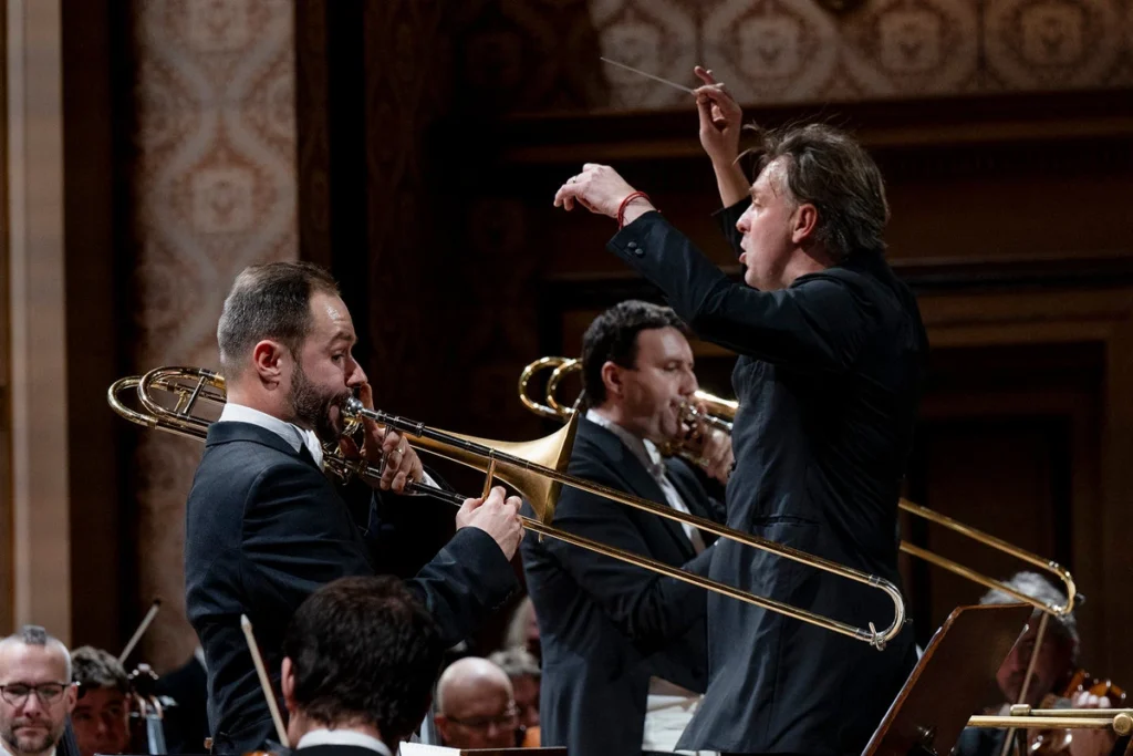V první polovině večera k sobě většinu pozornosti poutala oprávněně premiéra dvoudílného Dvojkoncertu pro dva trombony a orchestr Bimetal Miloše Orson Štedroně, přítomného v publiku. Sólových partů dvojkoncertu objednaného filharmonií se ujali členové České filharmonie, trombonisté Robert Kozánek a Lukáš Moťka, absolventi Vejvanovského kroměřížské konzervatoře, které v publiku podpořila početná výprava z moravské hudební metropole, do níž pravidelně zajížděl i Antonín Dvořák za přítelem Karlem Kozánkem. Popravdě řečeno, náležím k té části publika, která si před každou novinkou raději posune brýle do nosu. Štědroňova kompozice mě však překvapila, potěšila a pobavila ve všech směrech. Posluchače nejprve oklame, protože úvodní takty působí dojmem introdukce nějaké meditativní kompozice. Brzy se však vynoří rytmická figura a první větu ovládne rytmika až ravelovská. Posluchač nemusí být zrovna znalcem moravského folkloru, aby v první části nezaslechl ohlasy moravských lidových písní. A celá věta končí à la Kodályho Háry János. Druhou část dvojkoncertu zahajují sólové nástroje bez doprovodu orchestru jakousi imitací svatováclavského chorálu – ocitáme se ve světě předklasické hudby, v níž pozouny plnily roli slavnostního královského nástroje. Brzy však oddíl opět opanuje neodbytná rytmika. Pánové Kozánek a Moťka, kteří se na vzniku kompozice z let 2020–2022 podíleli, prezentovali sólové možnosti trombonu suverénním způsobem – zaujali, pobavili a napjali, což bylo autorovým úmyslem, když dílo pojmenoval Bimetal podle principu bimetalového pásu (a souhry dvou žesťových nástrojů). S podiem se sólisté rozloučili efektním přídavkem z dílny Ivana Zelenky (Trombon je snadný. Když se to umí, 2018).
