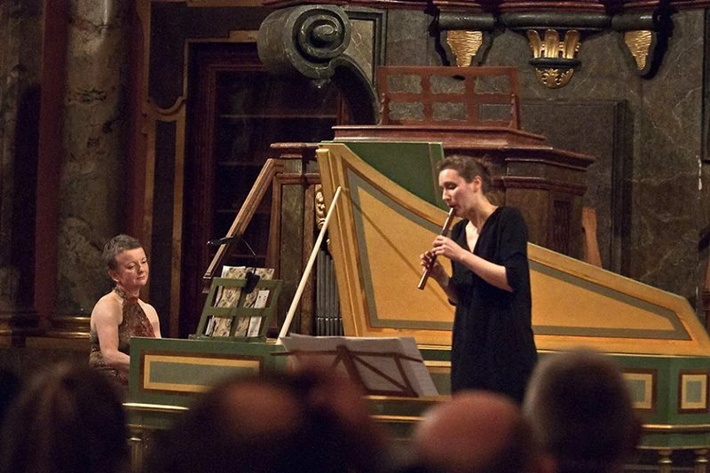 Zatímco první dva koncerty nové řady komorních večerů v Zrcadlové kapli pražského Klementina byly – co se tkne interpretů – výhradně pánskou záležitostí, na třetím koncertě (14. 4. 2015) předvedly pražskému publiku své umění dvě mladé dámy: německá multiinstrumentalistka Anna Fusek a brněnská cembalistka Barbara Maria Willi. Svému vystoupení daly umělkyně velmi neobvyklý název: „El Melo neboli Jak jíst barokní jablko“. A jak Barbara Maria Willi hned v úvodu vysvětlila, k tomuto zvláštnímu názvu je inspirovala skladba „El Melo“ – „Jablko“ italského skladatele Andrey Falconiera, která zazněla jako druhé číslo programu. Pokud zůstaneme u kulinářských konotací, nutno hned také zdůraznit, že se ze strany obou interpretek jednalo o nemístnou skromnost. Nenabídly totiž posluchačům jen pouhé jablko, ale připravily pro ně opulentní hostinu, na níž servírovaly nejvybranější lahůdky evropské barokní „hudební kuchyně“. První půle večera patřila méně známým, ale velmi zajímavým italským barokním skladatelům 17. století – G. P. Cimovi, A. Falconierovi, G. A. P. Meallimu a B. Storacemu. Po přestávce pak zazněla díla věhlasných mistrů německé a francouzské hudby 18. století G. Ph. Telemanna a J. Ph. Rameaua. V pestrém a rozmanitém programu se střídaly skladby nejrůznějších forem a žánrů a v nejrůznějším nástrojovém obsazení. Anna Fusek totiž hraje stejně skvěle na housle jako na zobcové flétny (kromě toho je údajně ještě také vynikající klavíristka a dokonce i úspěšná herečka) a s cembalistkou Barbarou Marií Willi vytvořila opravdu výborné duo. Obě dámy navíc působily dojmem, že jsou naladěné na „stejnou barokní strunu“, takže jejich vystoupení bylo pro obecenstvo skutečným zážitkem. Hrály s neobyčejným entuziasmem a nezřídka se nechaly hudbou unést natolik, že mezi jednotlivými čísly opomněly udělat pauzu, aby jim posluchači mohli zatleskat. Požitek z jejich hry pochopitelně ještě umocňovala překrásná barokní výzdoba Zrcadlové kaple. Bylo-li čeho litovat, tak snad jedině toho, že se v tištěném programu (jinak velice hezky vypraveném) nenašel prostor pro podrobnější informace o skladatelích a jejich dílech. Tak jako pro předchozí koncerty v Zrcadlové kapli, i pro tento „barokní“ večer připravila degustátorka Hannah Balaštíková ochutnávku vín, jež vybrala speciálně pro tuto příležitost. Skladby Telemannovy ji inspirovaly ke třem vínům z německého vinařství Raddeck: Trilogie Cuvée Rosé, Grauburgunder a Portugieser, pro italské baroko našla pak Hannah Balaštíková odpovídající chuť, vůni a barvu v italském červeném víně Piccini „Memoro“. Živě a poeticky stylizované charakteristiky všech těchto čtyř vín, otištěné na poslední stránce programové brožury, se daly číst jako báseň v próze a byly tak lákavé, že asi jen málokdo z posluchačů odolal, aby o přestávce některé z těch svůdných vín neokusil.