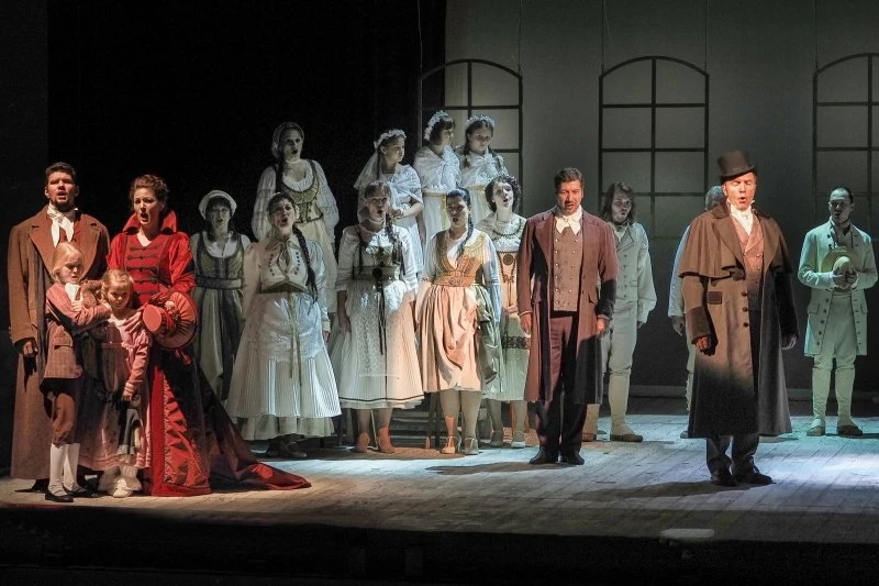 Bohuš s rodinou přichází na náměstíčko s kašírovanou kašnou, která je v průběhu jednání přiznaně odsunuta stranou, školní třída plná bílých andílků (věnečky, křidélka), kteří po sobě rozpustile házejí papírky. Malé překvapení – Terinka (jako jediná) nás vítá s hluboce odhalenými rameny, je jakousi místní atraktivní blondýnou z operety či muzikálu, která nevzbuzuje dojem, že má ráda kohokoli na světě. Sice velmi hezky zpívá (Veronika Kaiserová), ale to je pro tuto operu (a nejen pro ni) opravdu málo. Jiří (Sergey Kostov) je své postavě blíž, zpívá kvalitně svůj part a velmi vylepšil svou českou výslovnost. Inscenaci vévodí představitelka Julie Lívia Obručník Vénosová, která svou roli zvládá po všech stránkách na obdivuhodné úrovni. Její hlas je vyrovnaný v celém svém rozsahu, od barevné hlubší polohy přes krásně znělý střed až po volné výšky. Je až neuvěřitelné, že zároveň zpívá ve svém domácím libereckém divadle také Lejlu v Bizetových Lovcích perel. Jiří Rajniš ml. jako Bohuš je zcela v jejím stínu. Ano, zpívá (podobně jako paní Kaiserová) dobře, ale jeho herecká práce značně pokulhává (podobně jako u jeho otce Jiřího Rajniše v roli bratrance Adolfa).