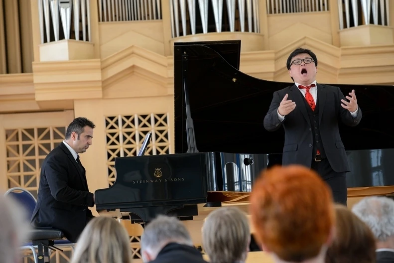 Nejdříve matiné v Sále Bohuslava Martinů, kde mezi 11. hodinou a polednem zpíval čínský tenorista Hui Jin a hrál arménský klavírista Aram Arakeljan. Přestože byl Číňan překvapivě dobrý, musel jsem si nutně položit otázku, proč jej Pražské jaro pozvalo, když stejně dobrých a lepších tenoristů jsou desítky. Že by marketingově politické motivy…? Hui Jin si vybral dva těžké písňové cykly, které u nás nejsou moc často uváděny – Schumannovy Dichterliebe op. 48 a Straussovy Acht Gedichte aus „Letzte Blaätter“ von Hermann Gilm op. 10. Jeho užší, lyrický tenor nemá sice kvalitu například Bostridge, Padmora, Letipuu či (co se týká opery) Flóreze, ale má příjemný hlas a zažitou stylově jistou interpretaci. Nevyužil (nebo nebyl schopen?) sice bezezbytku bohaté výrazové škály spojení textu a hudby, proměn nálad, jak je běžné u písňové elity, ale bylo tam mnoho pěkných míst. Více mu seděly písně klidné, „vyprávějící“ ve střední poloze a nižší dynamice (Schumann – Hör´ ich das Liedchen klingen, Wenn ich in deine Augen seh´; Strauss – Die Nacht, Die Zeitlose, Allerseelen), nežli allegrová vášeň s vysokými tóny, které nezněly vždy příjemně (Schumann – Die Rose, die Lilie, Das ist ein Flöten und Geigen, Aus alten Märchen winkt es; Strauss – Zueignung, Geduld, Die Verschwiegenen, kterou po nezdařeném začátku dokonce opakoval). Je jistě hodné obdivu, jak sympatický asijský tenorista, jehož asi čeká úspěšná kariéra, zvládl písňová specifika a pochopil svět německé písně, ale nadstandard, kdy máme při zpěvu písní pocit výjimečnosti, laskáme se s každou frází, s každým významem básnické předlohy, a otevírání nebeských bran, mu uniká. Bylo to dobré, příjemné, leč trochu nudné. Klavírista Aram Arakeljan byl spolehlivým, sehraným partnerem, ale jeho velkorysé používání pravého pedálu (viz například závěr Schumanna), mlhovinová úpornost doprovodu, téměř absence péče o detaily, malá zpěvnost a básnivost měly na výsledku nemalý podíl. Sólově se představil v ukázce z Čajkovského Ročních dob (Bílé noci), což by v drtivé světové konkurenci nemohlo obstát, a v odlehčené Liebeslied Fritze Kreislera (úprava od Sergeje Rachmaninova). Navíc hrál z not, což lze při kreditu Pražského jara vnímat jako smutný doklad průměrnosti. (Hui Jin měl občas ještě jeden doprovod – zvuk mobilů.)