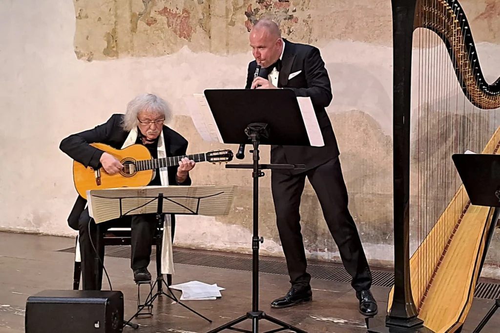 Sál Novoměstské radnice rozezněla nejprve skladba francouzského autora Napoleóna Coste Consolazione, v níž se zaskvěl hezky zpěvný tón hoboje s příjemným kytarovým doprovodem v dokonalém souznění. Lubomír Brabec poté sólově uvedl další dvě Costeho skladby, brilantní Etudu a Variace na Mozartovu Così fan tutte s volnými melodickými i perlivě rytmickými sekvencemi. Jako autor se Lubomír Brabec představil ve zpěvné skladbě věnované sv. Janu Pavlu II. inspirované jeho oblíbenou písní, další byla transkripce Dvořákovy Humoresky s pečlivými pasážemi a noblesní žertovností známé klavírní skladby. Před přestávkou se spojily kytara s hobojem ve skladbě Napoleóna Coste Cantilène s líbezným tónem a vyváženou souhrou.