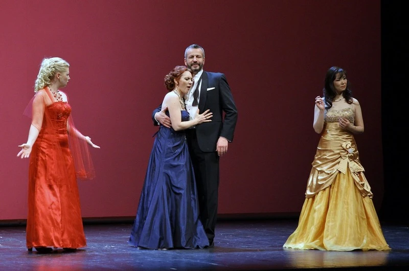 Leporellovu rejstříkovou árii zazpíval a náznakově zahrál Roman Hoza a dodal jí dobrosrdečnost a lehkou komiku, až mi trochu připomněl dávného Leporella pana Karla Bermana. Hozova cesta však, myslím si, míří, alespoň zatím, spíše k barytonovým rolím, protože mu hloubky příliš nezněly (viz výjimečný Thomasův Hamlet v Ostravě). Dona Elvíra Michaely Kapustové Fermati scelarato… má zatím ve vyšší poloze právě onu lesklou plošnost, o které jsem se zmínila v textu o Sestovi, hlas se tu zužuje, ztrácí kulatost a barvu.