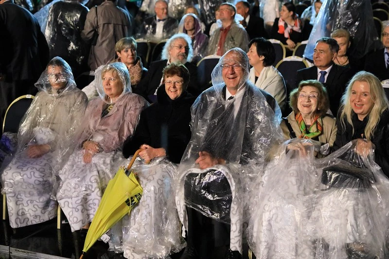 26. ročník Mezinárodního hudebního festivalu Český Krumlov nezačal právě nejšťastněji, přestože vysoká úroveň mezinárodního pěveckého obsazení úvodního koncertu 14. 7. – Angela Gheorghiu a Ramón Vargas – slibovala mnohé. Kolik dešťových kapek musí spadnout – nebo jinak – kolik notiček je nutno odehrát, aby bylo možno koncert ukončit pro nepřízeň počasí? Nevím, nepočítal jsem prvé ani druhé. Ale v druhé půli se spustila průtrž, která, ač předpovězena meteorology, pořadatele naprosto zaskočila. Ve Wimbledonu se i při malé přeháňce zatáhne střecha. To samozřejmě v Českém Krumlově není možné, a tak se publikum prostě pošle domů. Byl odehrán dostatečný počet notiček. Byly doby, kdy se v případě nepřízně počasí koncert přesunul do zámecké jízdárny či jinam pod střechu. Tak, jak to dělají na velkých evropských festivalech od Edinburku až po Salcburk: pokud vůbec pořádají open air, jsou dobře připraveni na deštivou variantu. V Českém Krumlově rozdají pláštěnky a pak už se jen modlí.