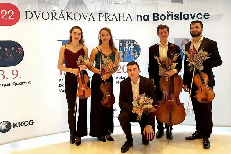 V druhé polovině koncertu se ke Kukal Quartetu připojil Matouš Zukal, aby společně zahráli slavný Dvořákův Klavírní kvintet č. 2 A dur op. 81. Také Matouš Zukal je ověnčen vavříny z Mezinárodní soutěže Pražského jara v roce 2021, kde získal druhou cenu, titul laureáta, Cenu Nadace Gideona Kleina pro nejúspěšnějšího českého účastníka a Cenu Českých center. Spojí-li se skvělé kvarteto se skvělým klavíristou, nemůže být výsledek jiný než skvělý. První větu pojali umělci v tempu spíše klidnějším, takže vše vyznělo do nejmenšího detailu. Hráli měkce, nijak nehrotili dramatické kontrasty, v dynamice nepřekročili hladinu decentního forte. Všechny nástroje zněly neobyčejně zpěvně, a to nejen smyčce, u kterých to můžeme očekávat, ale i klavír. Bylo to téměř snové provedení, které narušila jen drobná nehoda, když přibližně ve druhé třetině věty praskla Elišce Kukalové struna a umělci museli na pár minut přerušit produkci. Neméně snově než první věta vyzněly i krajní části volné věty. Její střední díl pak proletěl v úžasném tempu, se švihem a s obdivuhodnou lehkostí. Stejně vylehčené a svižné byly i následující dvě věty. Všichni interpreti mezi sebou během hry udržovali kontakt, vzájemně krásně komunikovali a na všech bylo vidět, jak je Dvořákova hudba těší. Po právu se jim dostalo od posluchačů velkého potlesku.