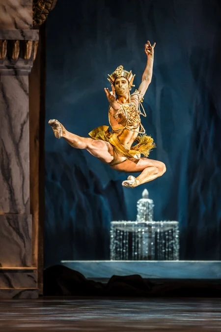 Rádžovu dceru princeznu Gamzatti tančí Rebecca King nebo Alina Nanu. Jejich role nevyžaduje tak širokou výrazovou škálu, jakou může uplatnit představitelka Nikie. Zato v rozsáhlém Grand Pas se Solorem (v této inscenaci ve scéně zásnub) jim choreografický part předpisuje rozsáhlý rejstřík klasického baletního tvarosloví včetně excelentních piruet a skoků. V Petipově původní verzi bylo Grand Pas zařazeno do posledního dějství baletu a svými nároky na vysoké umělecké mistrovství baleríny spělo k vyvrcholení inscenace.