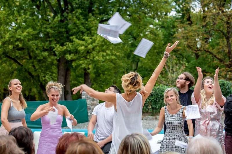 5. ročník interpretačních kurzů na zámku v Litni se letos odvíjel v dosti odlišném duchu než ročníky předcházející. Vynikající lektorky Martinu Jankovou a Markétu Cukrovou doplnil ještě Marek Mokoš, slovenský operní pěvec a režisér, který se věnoval vybraným mladým pěvcům po stránce herecké a scénické. Z týdne, v němž se obě špičkové pěvkyně věnovaly nastupující generaci operních sólistů v práci s hlasem, dechem, výrazem a emočním vyjádření zpívané role, se stal zásluhou mladého režiséra doslova maraton jevištního projevu, práce s pohybem a souzněním s hudbou a kolegy na jevišti i spolupráce s publikem a vtažení posluchačů do děje. Současná opera klade stále vyšší nároky na interprety a režisér letos nabídl novinku – jevištěm tentokrát nebyl sál liteňské Čechovny, ale celý zámecký park.
