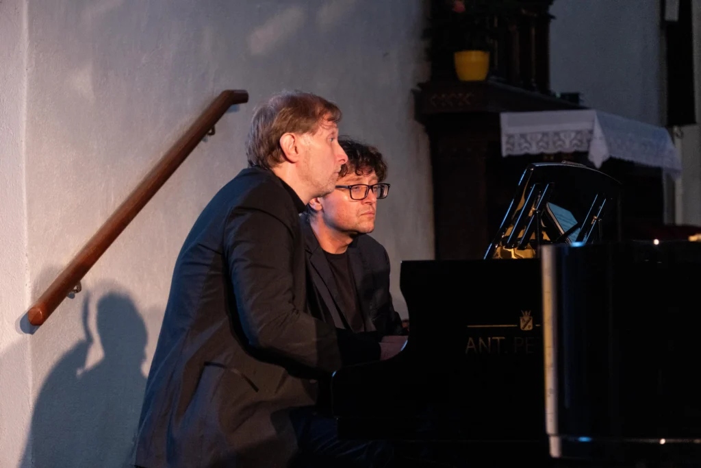Vyšehrad zahájili nalevo (primo) sedící Miroslav Sekera a napravo (secondo) sedící Ivo Kahánek v dokonalé souhře, jako by hráli na jednu harfu. Společně nastudovali toto dílo poprvé pro Smetanovu Litomyšl v roce 2020 a od té doby měli ještě pár příležitostí nechat ho zrát. Akustická přívětivost kostela přinesla i přes hustou symfonickou sazbu hranou na dvě velká klavírní křídla překvapivou zvukovou zřetelnost. Zvuk nástrojů byl barevný a kultivovaný i v nejvypjatějších částech závěrečných symfonických básní.