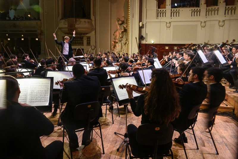 Orchestr na mě zapůsobil zejména barevnou a homogenně sehranou skupinou smyčců – řada dramatických momentů tak vycházela velmi efektně. Trochu jinak to už bylo s dechovými nástroji, které často působily příliš robustně a mnoho detailů, zejména těch lyrických, v partituře nevyniklo. Celkově bylo také provedení poměrně statické, a smyčce se s dechy málo zvukově pojily dohromady. Na druhou stranu bylo znát, že složení hráčů je prvotřídní a se zkušenějším dirigentem by mohl orchestr opravdu rychle stoupat nahoru. Thomas Guggeis vedl orchestr klidně a spolehlivě, všichni působili dojmem, že je muzicírování opravdu baví. Hrubě tesané provedení, bez lyrických jemností stálých světových orchestrů, přesto zapůsobilo a zanechalo pozitivní dojem. Samotný zvuk pak byl spíše wagnerovsko-straussovský než orientální – ale odrážel velkou touhu hrát společně a hrát co nejlépe. Dvacetiletá společná cesta byla znát, i když v životě orchestru to je skutečně jen začátek.