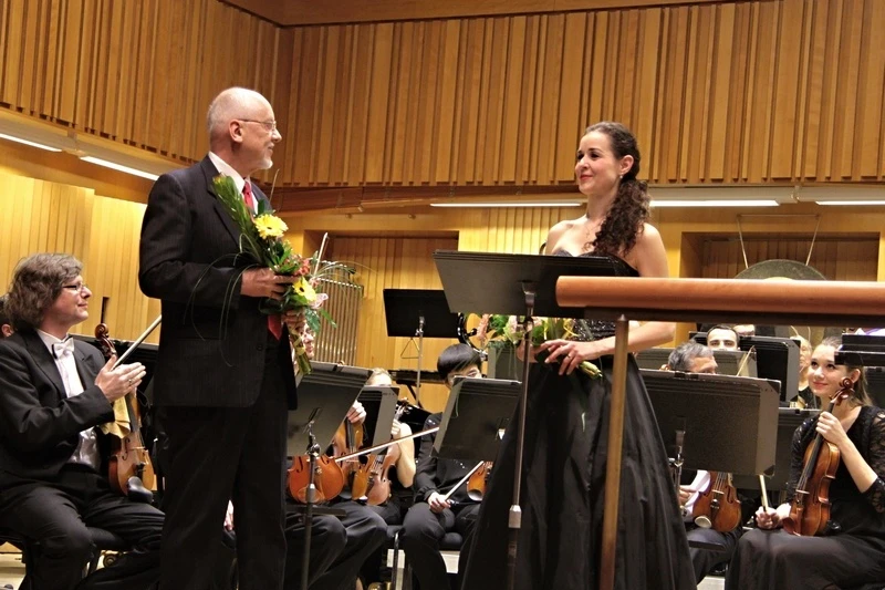 Nejočekávanější skladbu celého večera dramaturgie zařadila již na samotný úvod koncertu. Svého prvního veřejného provedení se tak dočkala Žítkovská bohyně, orchestrální fantazie pro velký symfonický orchestr s mezzosopránovým sólem, jejímž autorem je olomoucký rodák Jan Vičar. Skladatele (a současně také významného muzikologa, hudebního publicistu, pedagoga i popularizátora) při vzniku této kompozice zjevně inspirovaly nejen jedinečné tradice z oblasti moravských Kopanic, ale především dodnes ústně tradované či i písemně zaznamenané legendy o tamějších ženách údajně obdařených výjimečnými, až magickými schopnostmi. Vliv kopaničářského folkloru a jeho zpracování se sice objevuje v řadě Vičarových děl, nicméně v Žítkovské bohyni mají prvky lidové hudby naprosto specifickou pozici. Skladatel totiž tyto elementy záměrně upozaďuje a uvádí je spíše roztroušeně, případně ve formě drobných citací. Folklorní charakter však z díla útržkovitě vystupuje i za pomoci využití diafonie, příznačné především pro západobulharský lidový zpěv. Ostatně nutno dodat, že autor prakticky zcela opouští tradiční kompoziční způsoby práce a namísto nich předkládá značné množství rozličných avantgardních postupů a jejich vzájemných kombinací. Výrazný tematický prvek představuje pozvolné a téměř všudypřítomné ascendentní i descendentní glissando, progresivním dílem zároveň prostupuje nápadná mikrointervalika, a pro zjemnění některých kontrastů je užito i techniky sfumato. K celkovému pozitivnímu efektu pak mimo jiné přispívá také nepříliš obvyklé uvedení parlanda v jednotlivých nástrojových partech orchestru, aleatorní úseky vytvářené na bázi recitace daných textů nebo velmi nápaditá instrumentace. Šestnáctiminutové dílo sestává ze čtyř částí pojmenovaných Žítková, Vyškovec, Zaříkání bouře a Chabová. Jednotlivé segmenty sice mezi sebou vykazují jistý kontrast, avšak vzhledem k přítomnosti řady scelujících elementů působí skladba jako naprosto kompaktní celek. Ve stylizované roli bohyně (či lidové vědmy) se představila přední česká mezzosopranistka a sólistka opery i operety Moravského divadla Olomouc Barbora Martínková-Polášková, která s Vičarem dlouhodobě spolupracuje. Temná, sametová a na poslech velmi příjemná barva jejího hlasu v kombinaci se značně sugestivním podáním a pozoruhodnou mimopódiovou prezentací pak zjevně učinila dojem i na přítomného autora. Současně je na místě vyzdvihnout také profesionální výkon symfonického orchestru, jež pružně reagoval na dirigentova gesta, a v jehož provedení vyzněla kompozice velmi působivě. Interpretům se tak bezesporu podařilo vyjádřit idylický, místy až psychedelický charakter díla a hudebně ztvárnit křehkou a mnohdy bizarní (ne)hranici mezi lidovou magií a křesťanskou tradicí.