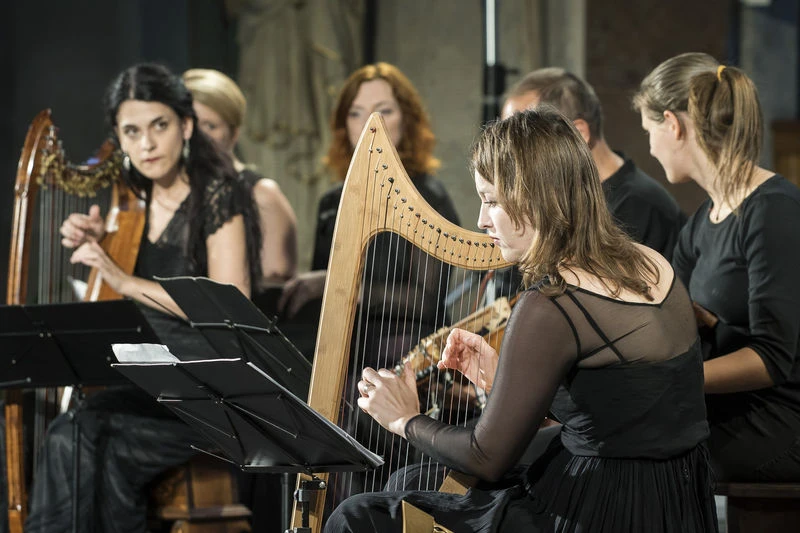 Hráči na nyckelharpy Marco a Angela Ambrosini se sólově představili ve dvou saltarellech z rukopisu uloženého v londýnské Britské knihovně, které do toku duchovní hudby vnesly příjemný kontrast. Během koncertu jinak italští hosté doprovázeli společně se středověkými harfami zpěv. Byla to dobrá volba, zvukově se tyto nástroje vhodně doplňují a přitom dokážou ilustrovat zpěv laud různého charakteru. U písní, které mají povahu spíše repetitivních litanií, se uplatní jako doprovod jemnější a průzračný zvuk harf a u zpěvu melodicky bohatého zase barva nyckelharp.