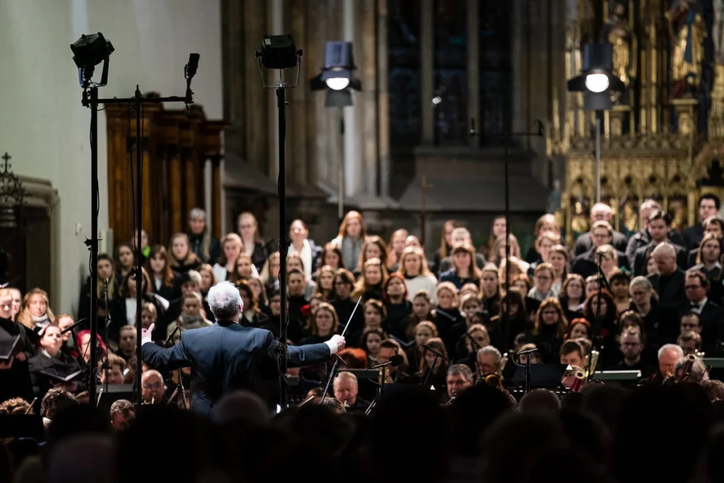 Dirigent Tomáš Krejčí měl před sebou nelehký úkol – nejenže bylo třeba z pomyslného „limbu“ přivést zpět k životu dílo, které je hluboce spjaté s brněnským kulturním životem a zaslouží si maximální pozornost posluchačů, ale to vše navíc s pěti různými sbory, čtyřmi sólisty a plným orchestrem. Nehledě na fakt, že se celý koncert odehrával v akusticky velmi náročném prostoru, který vyžaduje citlivé zacházení… A Tomáš Krejčí těmto nesnadným požadavkům zcela dostál – orchestr byl výrazově sladěný a dynamicky vyvážený, přičemž všechny sekce si udržovaly neustálou srozumitelnost i ve vyhrocenější částech. Jemnou a k prostoru ohleduplnou prací s dynamikou docílil Krejčí toho, že i ty nejjemnější instrumentační detaily (často v sekci dřevěných dechových nástrojů) nezůstaly opomenuty. To však neznamená, že by se snad v patřičně vypointovaných gradací držel zkrátka – v těchto okamžicích Krejčí rozezvučel celou katedrálu. I zde se však projevovala interpretační rozvaha a důsledné nakládání s následným dozvukem.