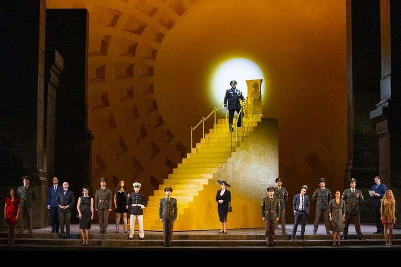 Už příprava inscenace musela být neuvěřitelně soustředěná – u barokní opery to ostatně ani jinak nelze, pokud chceme, aby zněla naším uším a očím samozřejmě. Sir David McVicar vytvořil spolu s dirigentem Harrym Bicketem dokonale souznící pár. Soudržnost inscenace s její výtvarnou podobou (scéna a kostýmy John Macfarlane) je samozřejmá. Chytrá a proměnlivá výstavba prostředí pro jednotlivé dramatické scény dodávala průběhu děje sugestivní prostor. Nad tím vším čnělo masivní, vysoké trojúhelníkovité zlatavé schodiště s trůnem.