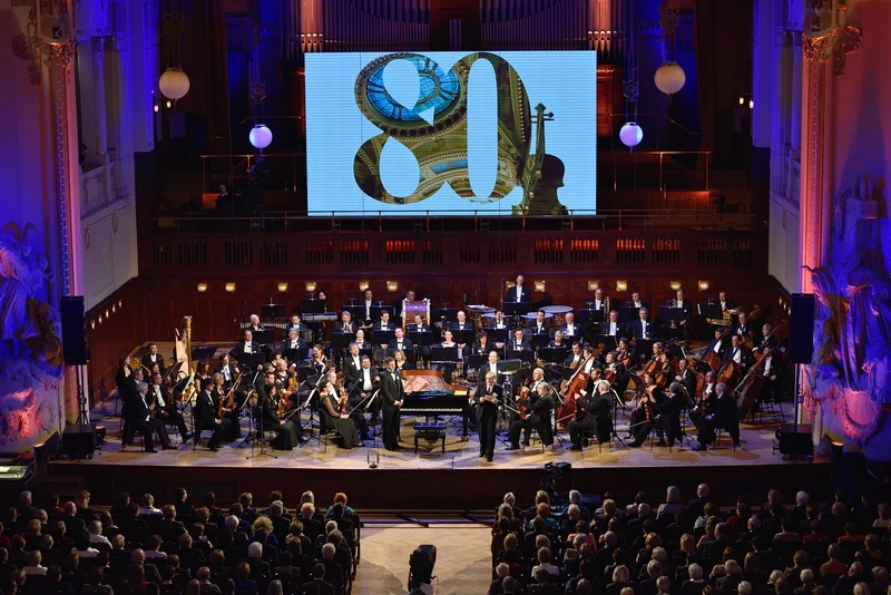 Narozeninový koncert v dobré kondici hrajícího Symfonického orchestru hl. m. FOK se uskutečnil 20. 11. 2014 ve Smetanově síni Obecního domu, protože právě v tento den byl (údajně) před osmdesáti lety založen. Osou byl akcent na F, když si F.O.K. připomněl svou slavnou filmovou historii (Film – Opera – Koncert). (Mezi lety 1935 a 1943 natočil hudbu k 212 filmům!) Před začátkem jsem hleděl do programu s nedůvěrou, ale hned od prvního čísla, kdy byla hudba Jiřího Fialy umocněna na projekční ploše před varhanním prospektem scénou Babička jede z filmu Babička z roku 1940 mi bylo jasné, že oslava bude mít vtip, nadhled a jiskru. (V praxi se ukázalo, že Terezie Brzková nemohla jet kočárem na Staré Bělidlo v rytmu Jízdy Valkýr…☺) Od počátku exceloval v roli vtipného průvodce slavnostním večerem, jenž snímala Česká televize, Ondřej Havelka. Navíc byl nakonec i nejvýraznějším sólistou, když s pro něho typickým šarmem leadera orchestru z 30. nebo 40. let zazpíval píseň Emana Fialy Sám já chodívám rád z filmu Těžký život dobrodruha a dominoval v závěrečné melodii Slávy Emana Nováčka Mám život hrozně rád z filmu Hotel Modrá hvězda. Neméně virtuózní výkon podal Jan Kučera v roli velmi dobrého dirigenta, flexibilního klavíristy a výtečného aranžéra. Vydařené byly zvláště jeho dvě filmové medley (Minulost Jany Kosinové – Těžký život dobrodruha – Hotel Modrá hvězda a C. a k. polní maršálek – To neznáte Hadimršku – Přednosta stanice). Velmi sympatickým gestem bylo jednak připomenutí úlohy koncertních mistrů, jednak dirigentů, kteří orchestr formovali. Tím nejdéle sloužícím byl Václav Smetáček (1942 – 1972), jehož záliba v komponování byla připomenuta sokolsky jadrným pochodem Vivat Olympia z roku 1939. Na olympiádě sice nikdy nezazněl, ale hudba je to kvalitní a na promenádních koncertech by si své místo našla.