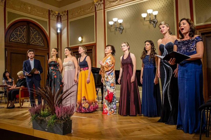 Martina Janková zahájila koncert půvabným provedením Mozartovy Fialky za doprovodu Gérarda Wysse a natěšené auditorium dále sledovalo výborně připravené finalisty. Japonka Nao Higano zpívala Markétku u kolovratu Jana Václava Tomáška v německém originálu hezkým, vyzrálým sopránem. Písní Roberta Schumanna Mondnacht (Měsíční noc) pak Martina Janková přenesla posluchače do nadýchnutého romantismu, aby vzápětí s mezzosopranistkou Eliškou Zajícovou, která zaujala již v loňském ročníku krásou hlasu a působivým scénickým projevem, uvedla v duetu Schumannovu píseň Erste Begegnung (První setkání) na lidový španělský text s doprovodem absolventky kurzu klavírního doprovodu Jarmily Holcové. Do třetice Robert Schumann s písní So wahr die Sonne scheinet (Tak jako slunce), v níž v duetu vystoupil s Martinou Jankovou mladý polský barytonista Jakub Borgiel. Ze sbírky Franze Schuberta Zimní cesta uvedl Borgiel sólově s doprovodem Gérarda Wysse pěkně modulovaným a barevně zajímavým hlasem píseň Die Wetterfahne (Korouhvička). Známou píseň Morgen (Zítra) Richarda Strausse příjemným projevem ozdobila Eliška Zajícová a s Gérardem Wyssem pokračovala také Švýcarka Nicole Wacker v Clair de Lune Gabriela Fauré a v náročné skladbě Benjamina Brittena Let the florid music praise! Její suverénní, jasný hlas s nádhernými výškami a odstíněným poetickým projevem patřil k nejlepším.