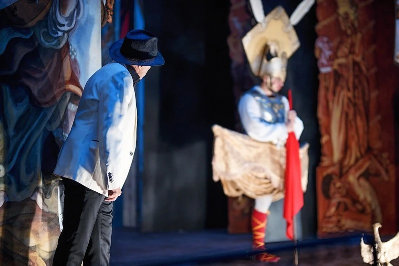 Hanzlíkovo režijní uchopení je podobné jeho dalším inscenacím – charakteristická barokní strnulost, stylizovaná gestikulace vycházející z dobových manýrů a bohatě zdobené kostýmy tvoří pevný základ režisérova vizuálního pojetí. Samotné scéně již tradičně vévodily měnící se malované kulisy, před kterými se děj odehrával. Dalo by se říct, že Hanzlíkovi slouží jevištní stránka spíše jako médium, pomocí kterého tlumočí hudební myšlenky. Ne že by snad kostýmům nebo scéně byla věnována malá pozornost, Hanzlík je však v prvé řadě umělecký vedoucí ansámblu a tam je invenčnost jeho práce vidět, a především slyšet, nejlépe. Hudební výkony zpěváků a orchestru se však diametrálně lišily. Zatímco většinou bývá orchestr Ensemble Damian pevným opěrným bodem zpěváků, minimálně v případě pondělní (22. července) reprízy Zianiho opery tomu tak nebylo. Smyčcová sekce zněla plačtivěji, než bylo asi původně zamýšleno, rytmická stránka provedení byla místy přinejmenším diskutabilní. Na začátku druhé poloviny bylo takřka k nevíře, že se jedná o stejné těleso, které jindy podává tak kvalitní a osobité interpretační výkony (nelze si nepovšimnout, že v ansámblu probíhají výrazné personální změny, otázkou tedy je, zda tato proměna souboru prospívá). O to kontrastněji působily velmi povedené pěvecké výkony, kterým vévodilo trio Holodňáková, Ptáček a Novotný. Díky výrazově pestré interpretaci pokryl Vincenc Ignác Novotný veškeré odstíny charakteru dvorního sluhy Rola. Jeho postava byla uvěřitelná nejen v odlehčených a komických částech, ale v závěru díla dokázala přinést až nečekaně lyrické, křehké a emocemi nabité hudební sdělení. Martin Ptáček v roli Almeta (Jupitera) působil z počátku sice mírně neukotveně, velmi rychle však jeho příjemně kultivovaná barva hlasu našla pevnou půdu pod nohama. Za hudebně nejpovedenější části lze považovat duety s Hanou Holodňákovou, jejíž přesná práce s výrazem, dechem i dynamikou ukazuje na zkušenosti i cit pro historicky poučenou interpretaci. (Poněkud nešťastnou výtku si zaslouží doprovodné titulky, které byly plné zjevných gramatických chyb, podivného užívání velkých a malých písmen, a to i u spojek a částic, a nestandardních překladatelských novotvarů.)