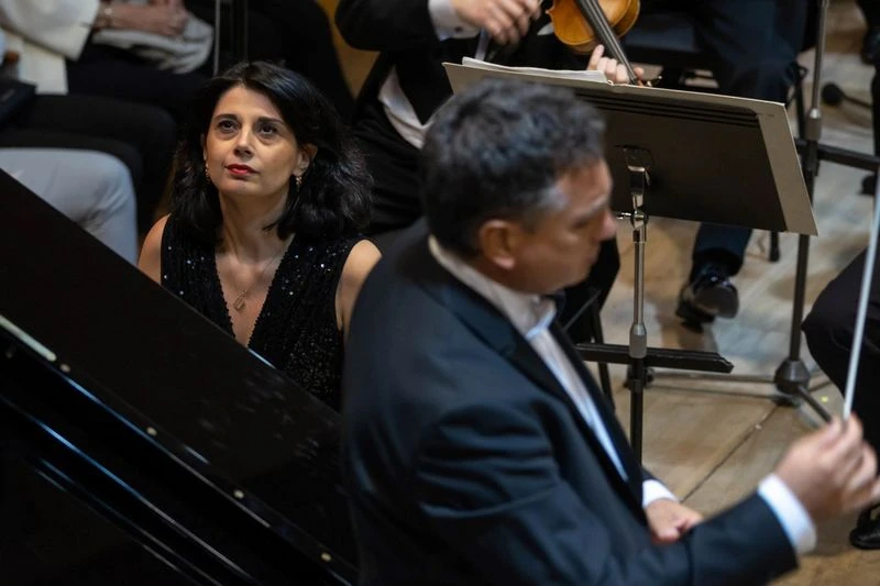 Nejstarší a zároveň nejrozlehlejší skladbou večera byl Koncert pro klavír a orchestr č. 4 G dur op. 58 Ludwiga van Beethovena z roku 1806, v němž sólový part odehrála gruzínská klavíristka Nino Gvetadze. Technicky zjevně mimořádně vybavená interpretka svojí velkorysou pedalizací tóny v jednotlivých frázích jakoby přetahovala jemnou glazurou. Na druhou stranu ovšem místy přidala na úhozu a ubrala pedál pro pevnější, silnější tón. Doslova neoblomně zněl pod jejíma rukama olomoucký Steinway zejména v impozantních kadencích. Přesto si tato interpretace Beethovenova čtvrtého koncertu zachovala jistou lehkost, zejména díky soudržnému, sebejistému zvuku orchestru. Gvetadze jako přídavek provedla Chopinův valčík s uměřeným výrazem a štědrým rubatem. Její interpretace ovšem zachovávala logiku struktury skladby – stejně jako v případě Beethovena.