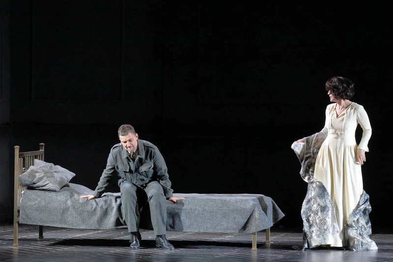 Jenže režisérka neví, co dál. Neví, jak nakládat s abstrakcí a stylizací a současně s vášnivě se vzpínající Verdiho hudbou. Pouze se očividně chce vyhnout všemu efektnímu, barvitému (s výjimkou hořícího ohně), jakémukoli náznaku dobových kostýmů. Ve strohé scénografii Christiana Schmidta, zobrazující noblesní, leč vybydlené prostory, převládá šeď a chlad, jednou z mála rekvizit je postel – častá režisérská berlička upozorňující na to, že se hraje o lásce a umírání…