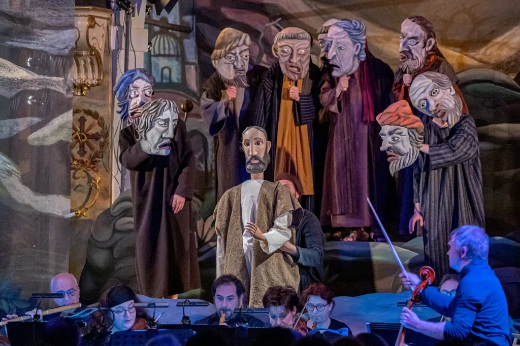 Na Velký pátek a Bílou sobotu byly v pražském kostele sv. Šimona a Judy uvedeny Bachovy Janovy pašije, BWV 245 (Passio Secundum Johannem), v koncepci režiséra a scénáristy Matěje Formana. „Janovy pašije jsou často považovány za oratorium blížící se svým charakterem opeře. Dílo je nabité dramatickými prvky, samotným námětem počínaje a rozdělením rolí konče. Emocionální příběh odsouzení a ukřižování Ježíše Krista je provázený hudbou, která nutí posluchače živě si představovat děj, kde postavy Ježíše, Piláta, Petra a dalších se zdají hrát role jako na divadelním jevišti. Dramatičnost podporuje i neobvyklé obsazení sboru do role rozběsněného davu Židů.“ (Markéta Ottová)… Poprvé jsem seděl zády k bývalému presbytáři a před sebou měl stylizovanou pohádkovou biblickou krajinu. Nebál bych se verdiktu, že z apoštolovy zvěsti geniálně vytvořil pouliční divadlo, kde se prolínají masky, loutky, herci a zpěváci, to vše rámované do stylizované židovsko-palestinské krajiny. Bylo to velmi poetické a, jakkoliv nevím, je-li pan Forman křesťan, velmi empatické. „Zlidovění“ ústředního biblického příběhu mi připomnělo písemné dobové doklady o pouličních divadelních představeních (světských i duchovních) v Itálii, Španělsku i jinde, často před kostely, v 16., 17. a 18. století. I tam se údajně využívaly občas loutky.