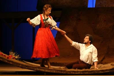 A konečně nedělní odpoledne: vynikající Jeník Jaroslava Březiny , nejpřekvapivější pěvecký i herecký výkon této inscenace, a Mařenka mladé Petry Šimkové , jejíž rozechvěný soprán korunují pevné výšky. Proč však zpívá v téže době jak lyrickou Gildu, tak mladodramatickou Mařenku, tomu, přiznávám se, nerozumím.