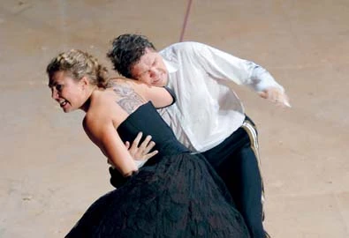Není aktualizace jako aktualizace. Zatímco s Čarostřelcem se festival hluboko propadl, inscenace Armidy Josepha Haydna jej opět katapultovala nahoru. A to se v ní „křižáci“ proháněli po jevišti jako současní provozovatelé extrémních sportů s přilbami na hlavě! Jenže to, co v Čarostřelci vyvolávalo smích (nebo spánek), u Armidy diváka vtahovalo do děje. Přitom vedle jiných zpracování druhdy oblíbeného příběhu z renesančního eposu Osvobozený Jeruzalém Haydnova opera vlastně příliš dějová není. Svedení Rinalda Armidou se odehraje před jejím začátkem. Křesťanský rytíř a orientální čarodějka jsou už zamilovaní, a ve sledu árií a recitativů se neustále vrací otázka, zda se rozejít či nikoli, zda dát přednost povinnosti křesťanského vojevůdce nebo lásce k muslimce. V porovnání například s Händlovým Rinaldem není Armida rozhodně tak divadelně účinná, a tak není divu, že se na programech neobjevuje (připomeňme v té souvislosti koncertní provedení ve Vídni před sedmi lety s Nikolausem Harnoncourtem a Cecilií Bartoli, které bylo zaznamenáno a posléze vydáno firmou Teldec). Zařazení titulu Mozartova staršího současníka v podstatě potvrdilo, co snad není třeba příliš zdůrazňovat, totiž že na Mozarta jakožto hudebního dramatika v druhé polovině 18. století nikdo neměl (Armida měla na dvoře knížete Esterházyho premiéru roku 1784, tedy dva roky před Figarovou svatbou). Hudební kvality Armidy jsou ovšem přinejmenším v jednotlivostech nesporné. Ve světě velmi ceněný režisér Christof Loy dokázal slabiny díla překlenout a jednoduchými prostředky docílil maximálního účinku. Scéna, kterou mu na širokém jevišti Felsenreitschule postavil Dirk Becker, byla spíš jakousi instalací, složenou ze tří samostatných dřevěných stěn, z nichž jedna byla zešikmená a sloužila k divokému a efektnímu, téměř kaskadérskému úprku „vojska“, které představoval speciálně angažovaný pohybový ansámbl. Pouliční tlampač vyhrával namísto orchestru pochodové motivy z opery. Kostýmy Bettiny Walter měly dnešní střihy, ale postavy do nich oblečené nejevily (na rozdíl od Čarostřelce) známky triviálnosti a prázdnoty, všechny touhy, bolesti, ale i agrese prožívaly doopravdy, všechny vztahy byly precizně vypracovány. Obrovské napětí, které herci dokázali vyjádřit, zabránilo pocitu směšnosti například ve scéně, kdy zoufalý Rinaldo polévá jeviště i sám sebe benzínem a hodlá vše podpálit. Vzniklo prostě mimořádně působivé nadčasové zpracování dávné látky o vzájemném střetu mužského a ženského principu a nevyzpytatelnosti lidských emocí na pozadí znesvářených kultur. Veliký podíl na úspěchu měla šestice vokálně i pohybově skvěle připravených sólistů. Vycházející hvězda operního nebe, sopranistka Annette Dasch (v lednu příštího roku bude zpívat na mozartovském koncertě ve Stavovském divadle!), upoutala v představení 18. srpna v hlavní roli nádherným, suverénně vedeným hlasem (a také tetováním na zádech). Tenorista Michael Schade byl přesvědčivým, nerozhodným Rinaldem, i když jeho hlas je poněkud nazální. Barytonista Vito Priante ve slušivém modelu energicky charakterizoval postavu krále Idrena, tenoristé Richard Croft (vynikající Mitridate z loňského mozartovského projektu) a Bernard Richter ztvárnili Rinaldovy druhy, rytíře křesťanského vojska. Nicméně největším překvapením byla nakonec Mojca Erdmann, která v roli muslimky Zelmiry oslnila křišťálově jasným, průrazným sopránem. Energičností a precizností přispěl svým dílem k výbornému dojmu i Orchestr Mozartea pod taktovkou Ivora Boltona.