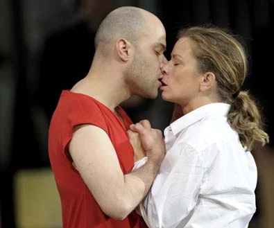 Tak tedy Figarova svatba . Inscenace před několika lety otevírala rekonstruovaný Haus für Mozart, a tehdy s Annou Netrebko v roli Zuzanky sklidila značný ohlas. Viděl jsem ji až další rok a teď, kdy se znovu opakovala, jsem teprve dostatečně pochopil „nejapnost“ všech posunů. Tedy především nápad odehrát děj na velkém schodišti prostorného domu (scéna a kostýmy Christian Schmidt ). Ani jedna situace se sem nehodí: Figarovo vyměřování místa pro postele, soud, scény s Cherubínem, prostě nic. Žádný nábytek, Cherubín se musí schovat za záclonu a hrabě se krčí v koutě, kde se dokonce vymočí. Na 2. obraz se sice schodiště zakryje, ale opět: akce hraběnky bez možnosti se alespoň na chvíli posadit jsou násilné, stejně se sem nehodí většina akcí v zahradě. Rozhodně na schodišti by se nic z toho nekonalo. A nápad s asi tak dvanáctiletým Amorem v námořnickém oblečku s křídly? Jednak kopíruje Cherubína a jednak se jeho funkce brzy vyčerpá, pak už jenom překáží.